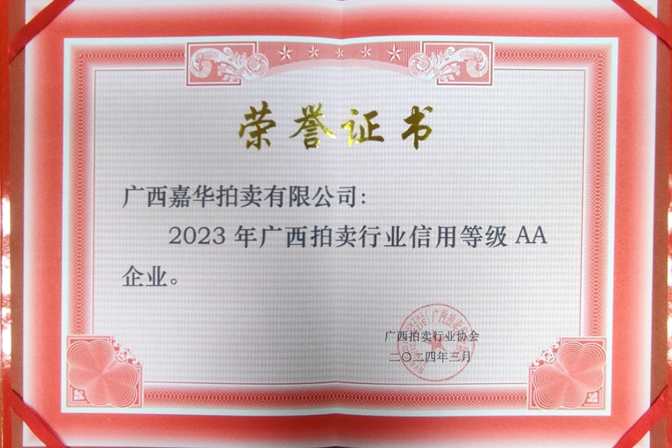 廣西嘉華拍賣有限公司于2017年12月由柳州市嘉華拍賣有限公司更名而來,原柳州市嘉華拍賣有限公司的